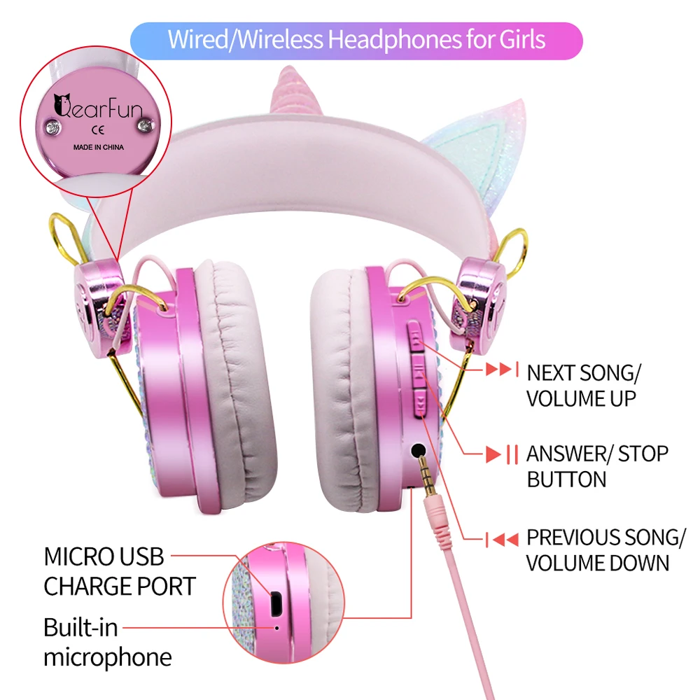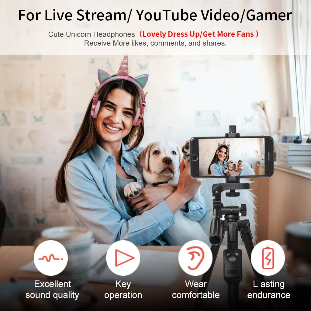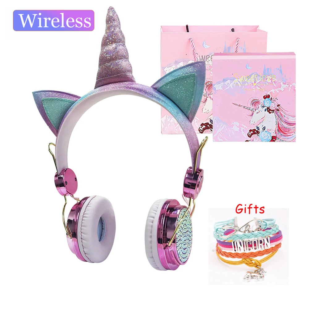 Беспроводная гарнитура-единорог, наушники детские, детские наушники, беспроводная гарнитура с микрофоном, беспроводные наушники, рождественский подарок,Бесплатный браслет единорога