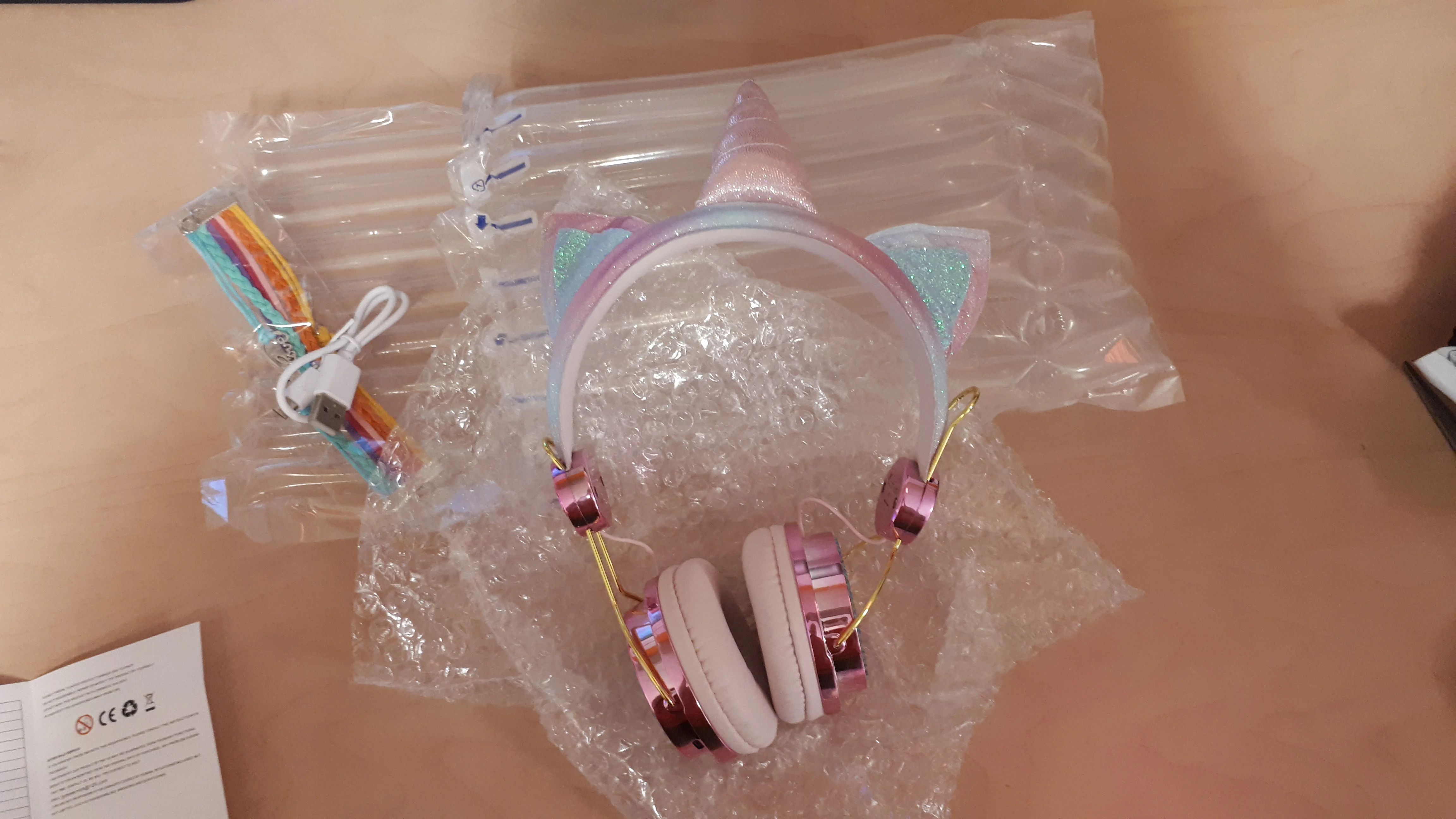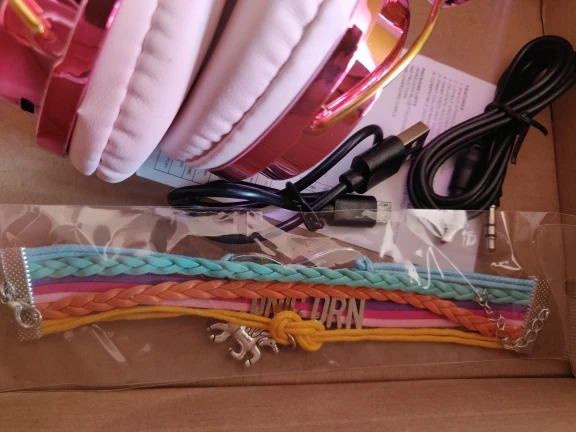 класс, дочка 11 лет в восторге и от наушников, и от подарка - миленький браслет с единорогом.
