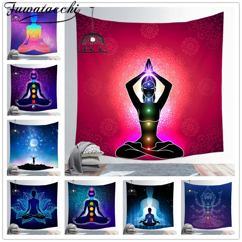 Fuwatacchi гобелен, индийская мандала, большой гобелен, коврик для йоги, покрывало в стиле хиппи, домашний декор, настенная подвеска, 55x73 см