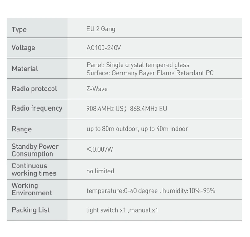1. Пульт дистанционного управления-позволяет контролировать включение/выключение света в любом месте. 2. Передовые материалы-модный дизайн 1 мм панель из закаленного стекла. 3. Сенсорный смарт-чип-набор обеспечивает немедленную реакцию. 4. Защита от перегрузки-автоматически отключите питание. 5. Интеллектуальное распознавание-Автоматическое Сопряжение. 6. Постоянная память-запоминает последний Статус перед отключением питания. 7. Энергосбережение-вы всегда можете выключить свет с помощью приложения 8. Состояние синхронизации-состояние устройства в режиме реального времени. 9. Светодиодный дисплей в ночное время-низкий светильник, легко включается в ночное время. 10. Установите расписание синхронизации-заданные таймеры автоматически Включите светильник в вашей комнате. 11. Размер продукта (Д x Ш x В):86x86x34,2 мм 12. Нужны живые и нейтральные провода