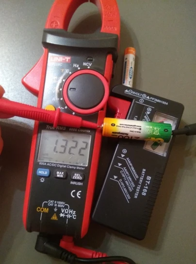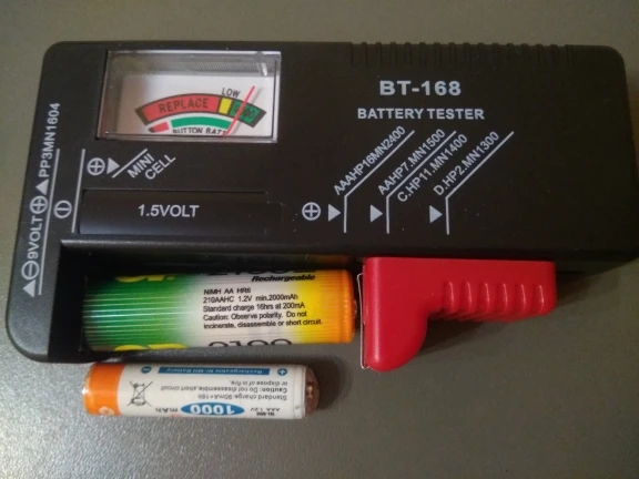 проверил на куче батареек аа и ааа, все определяет. если новая, то стрелка улетает вправо до упора. часть батареек оказалась мертвая, некоторые были в пограничной желтой зоне.