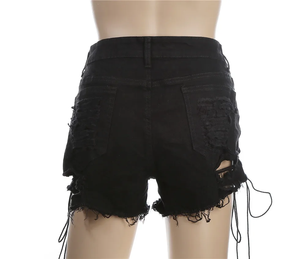 Женские рваные джинсовые шорты, обтягивающие черные шорты с дырками...
