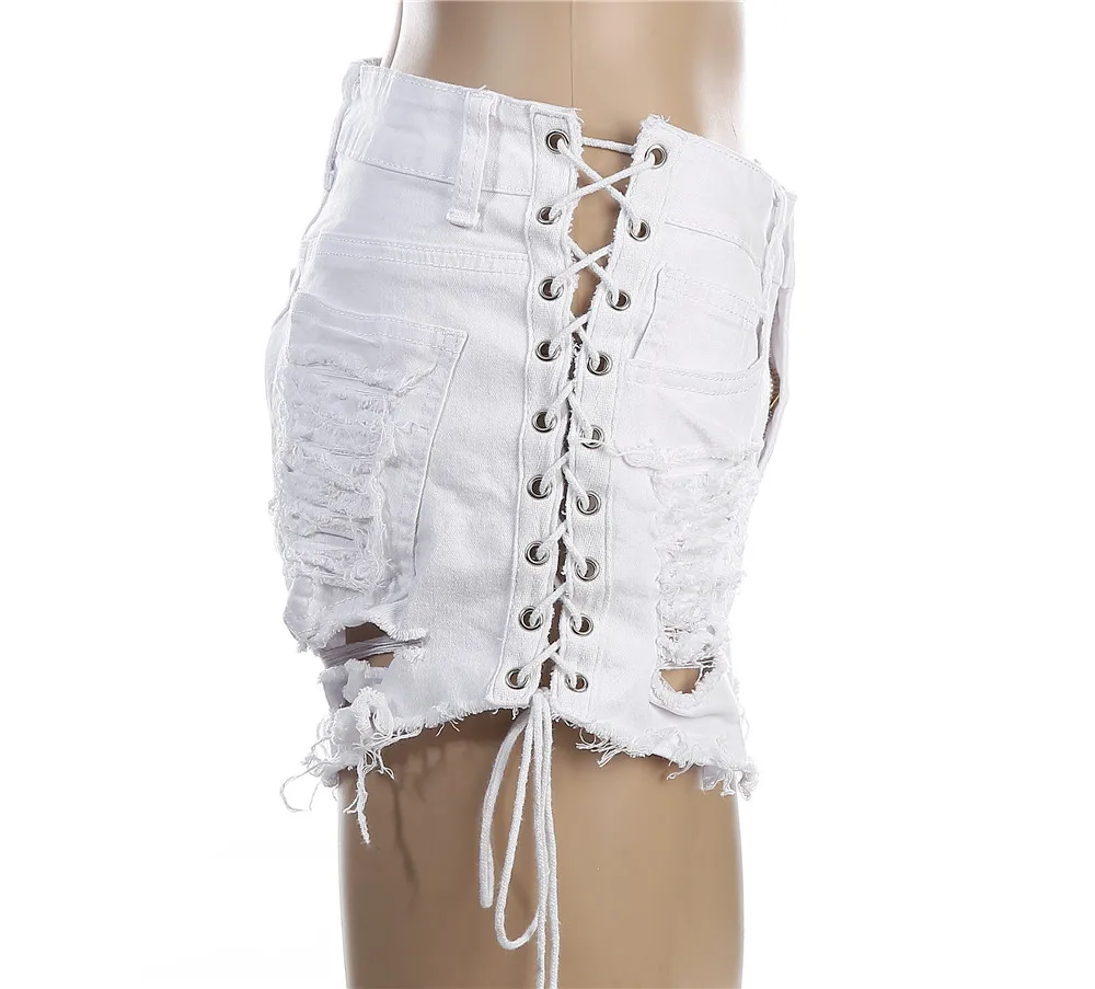 Модные рваные короткие джинсы для женщин, пикантные джинсовые шорты со шнуровкой сзади, с кисточками, узкие короткие брюки, размера плюс, 2020