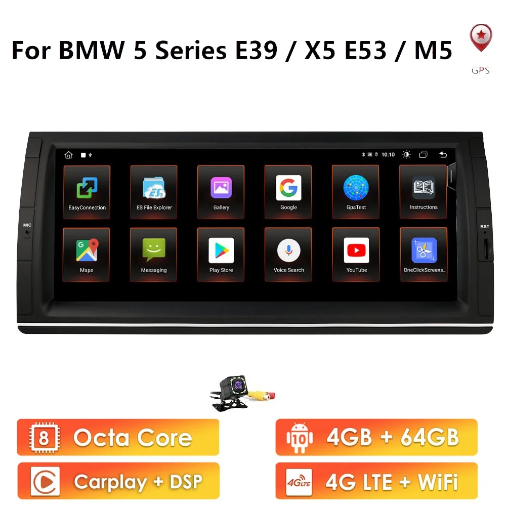 Автомобильный DVD-плеер, 10,25 дюйма, Android 10, 2 Гб + 32 ГБ, GPS-карта, 4G WiFi, Bluetooth, TPMS, carplay, радио для BMW M5, E39, X5, E53, 1024x600, USB DAB