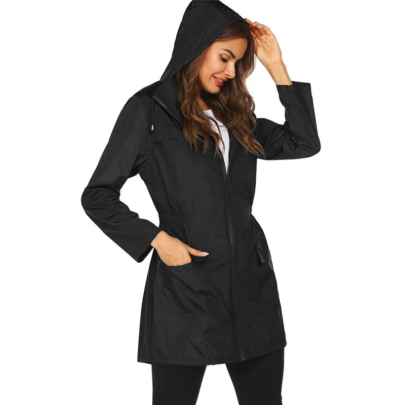 Женская уличная водонепроницаемая куртка на молнии, длинный модный ...