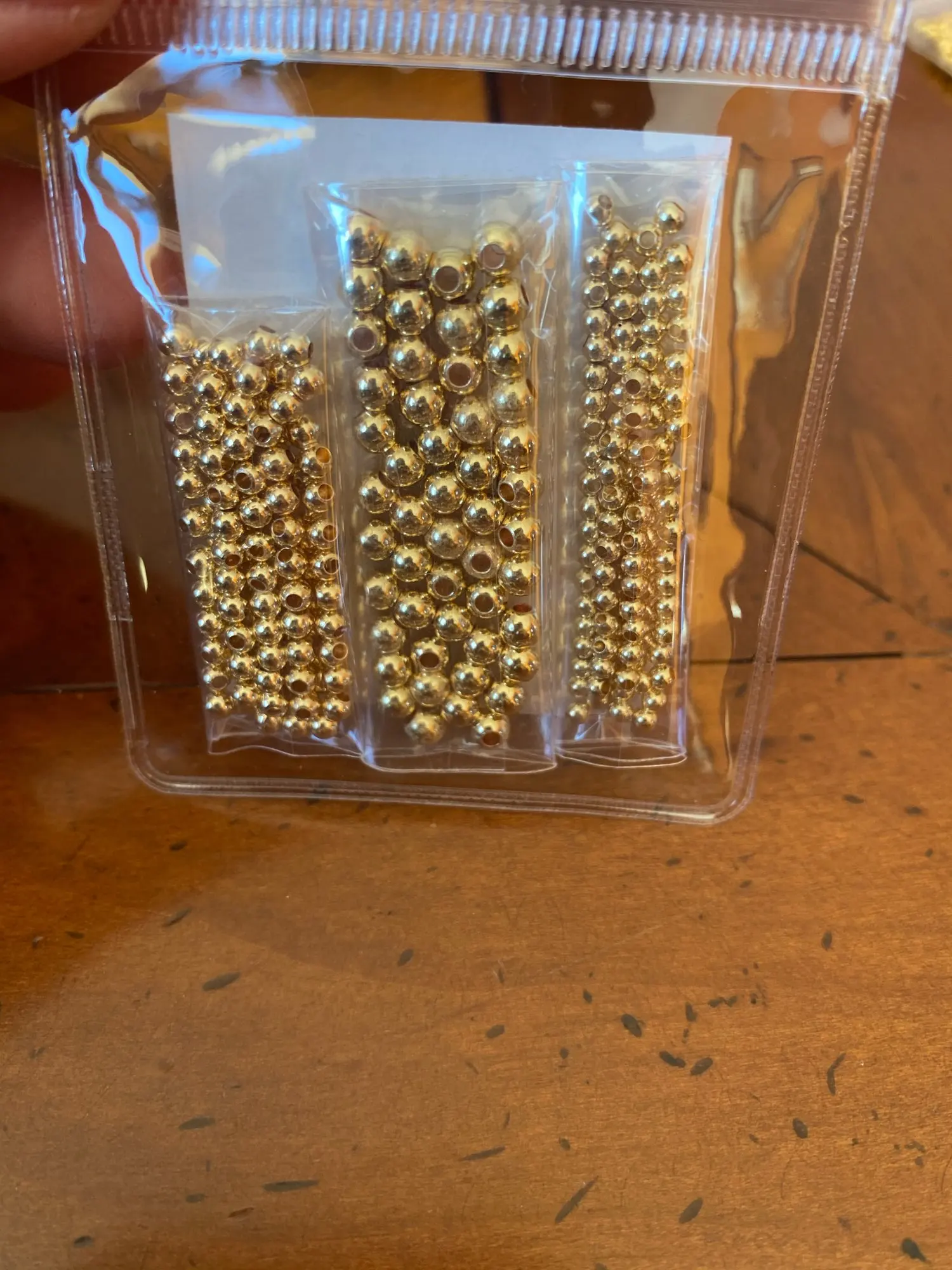 Пришло очень быстро, хотя заказ делала перед новым годом. Количество бусин не считала. Тяжеленькие. На деле не проверяла, нужны были бусины чтобы не сдиралось золото