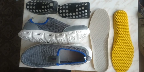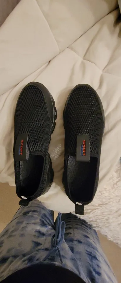 Отправляли товар неделю. Затем шло три. Итого - месяц без двух дней. Получил на "Meest-express". Кроссовки лёгкие. В комплекте дырчатые стельки и подошва с отверстиями, прикрытыми воздухопроницаемой тканью для вентиляции стопы. В таких не перегреешься. Этим я очень доволен. Но большемерят ужасно. Я заказал 12,5 размер (это 28,5 см.) на 44-й размер, 28 см. нога, чтобы пол-сантиметра было для свободы. А пришло 30 см. по стельке. Но по фото видно, что даже если бы взял 12 размер на 28 см., всё равно там три пальца гуляет. Вывод такой: моделью очень доволен, доставка - в норме, а вот сами большие лапти меня расстроили.