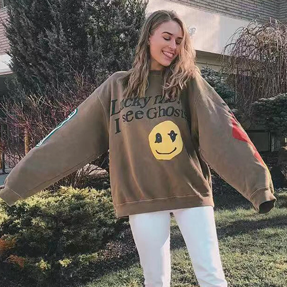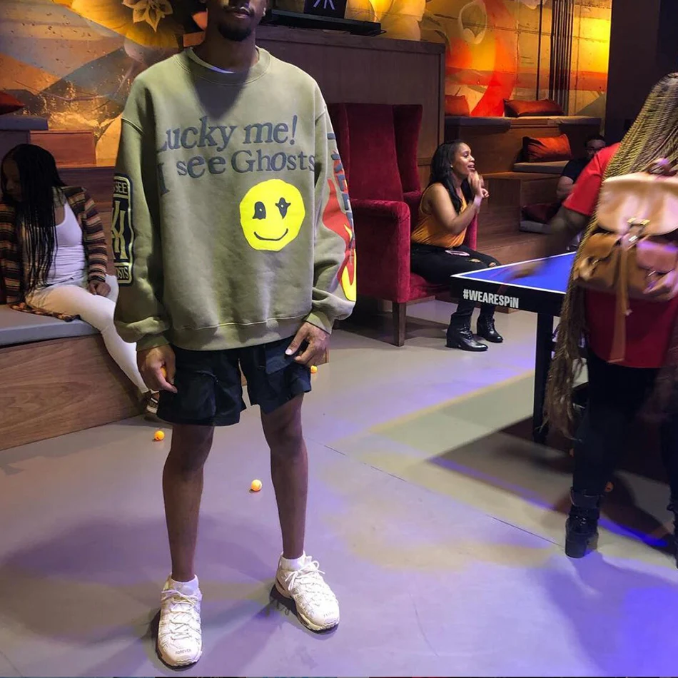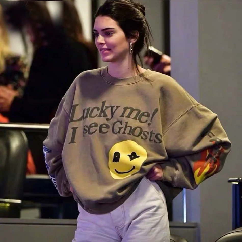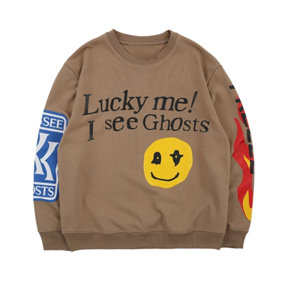 Толстовка Kanye West с надписью граффити, Счастливый я вижу Призраков, худи с капюшоном в стиле хип-хоп, уличная одежда в стиле Харадзюку