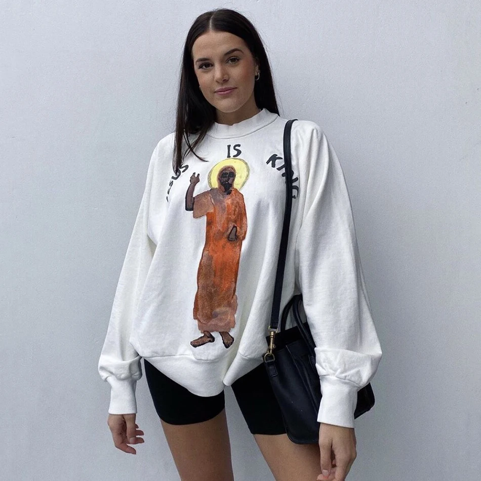 Толстовка Kanye West с принтом граффити и надписью, тяжелая толстов...