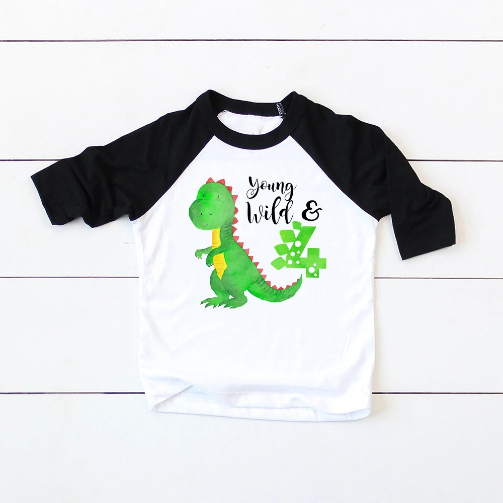 Рубашка для дня рождения с динозавром, футболка с длинным рукавом, рубашка для вечевечерние НКИ реглан с динозавром на день рождения, подарок с динозавром, модная футболка для мальчиков