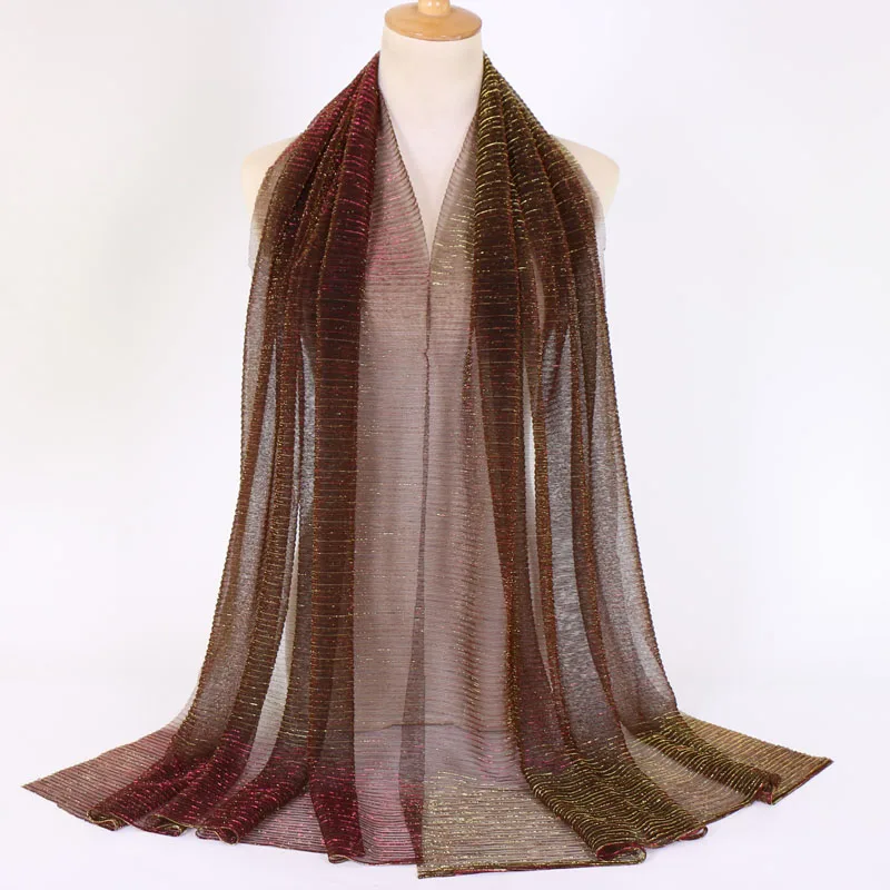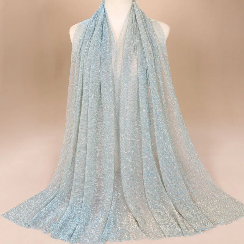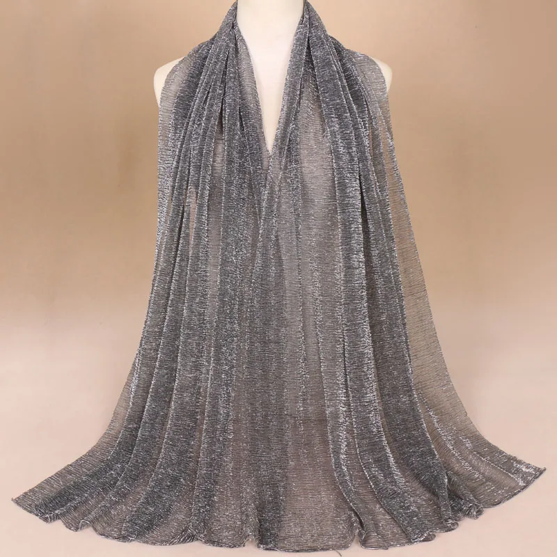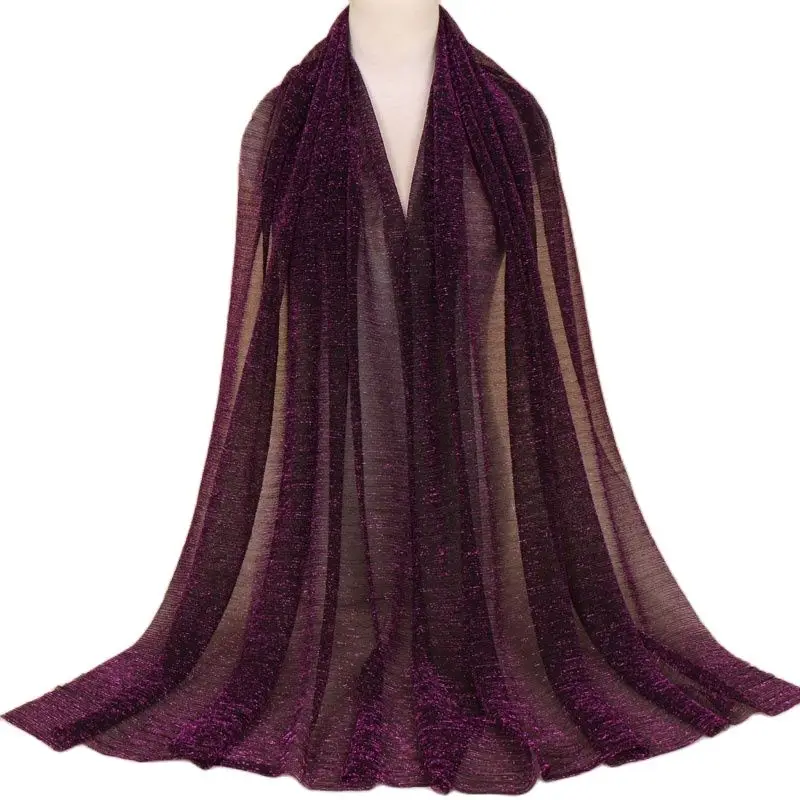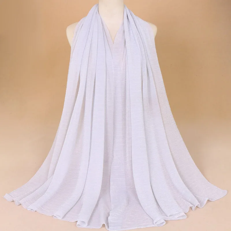 Роскошный блестящий хиджаб для женщин, мусульманская шаль, простые складчатые шарфы для женщин, плиссированный мерцающий тюрбан, фуляр, морщинистая бандана