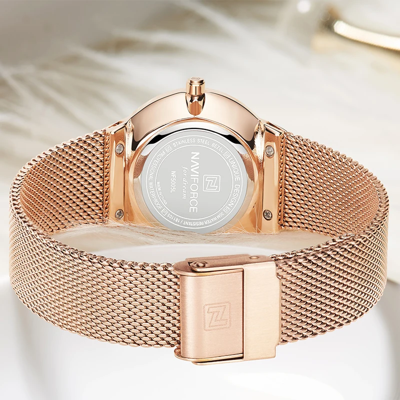 Часы наручные NAVIFORCE женские кварцевые, люксовые модные водонепроницаемые, с датой, стразы