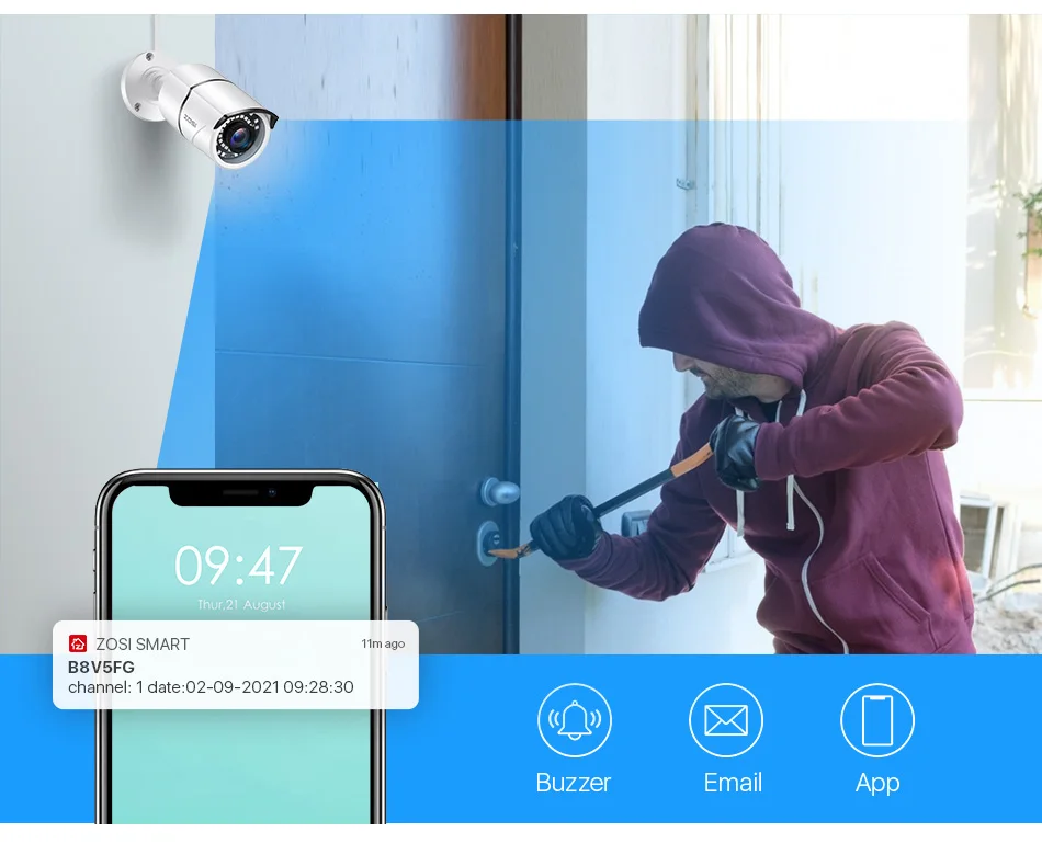 Установите обнаружение движения, мгновенные уведомления и оповещения по электронной почте будут перемещены на ваш телефон напрямую, пока камеры обнаруживают движущиеся предметы, это будет держать вас на связи с тем, что вы заботились, пока вас нет.