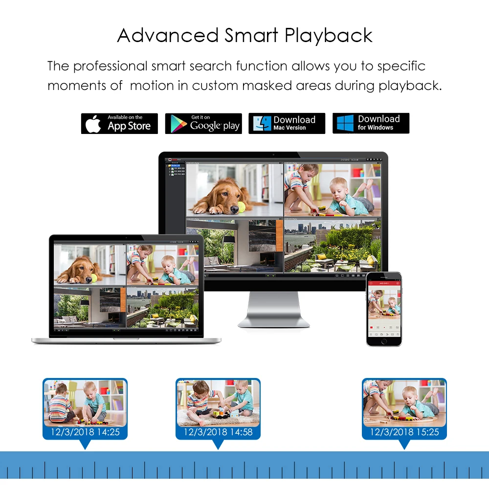 Новейшая технология сжатия H.265 + уменьшает размеры видеофайлов, экономит ценное место на жестком диске и обеспечивает превосходный и плавный просмотр.