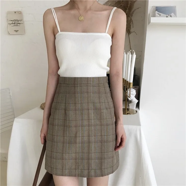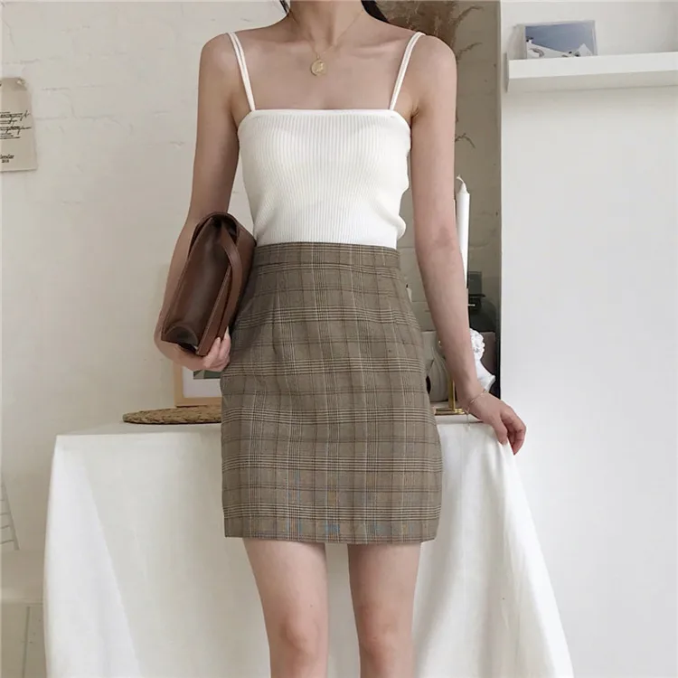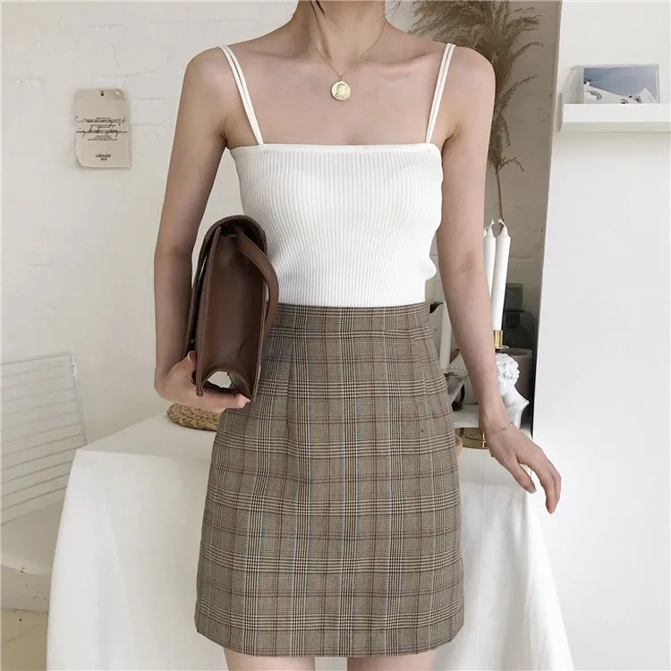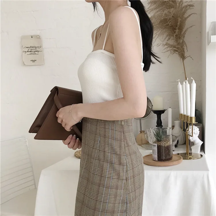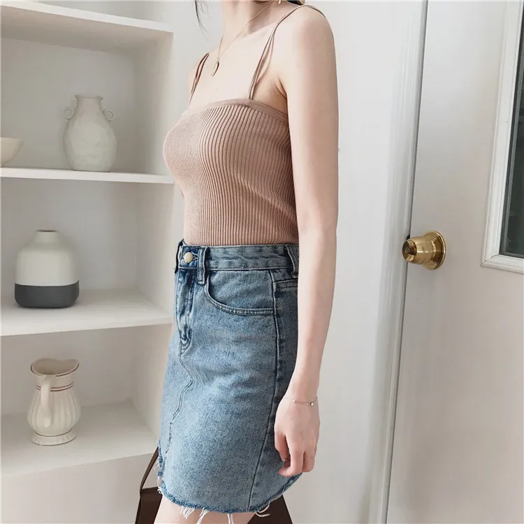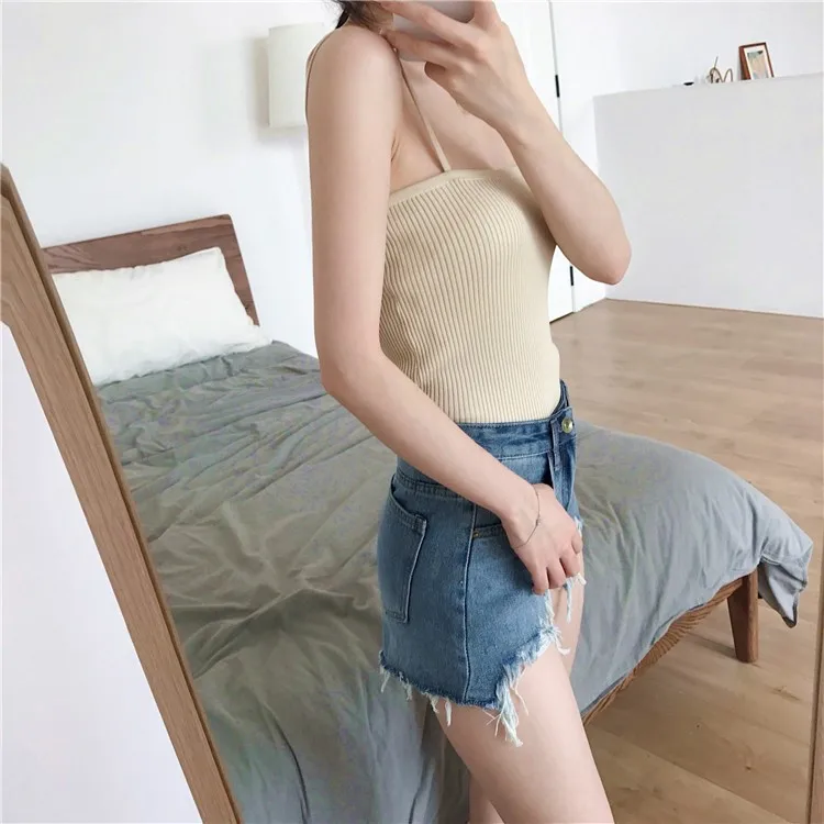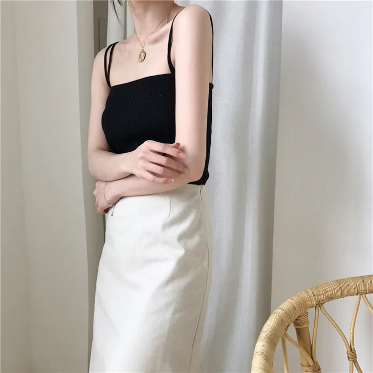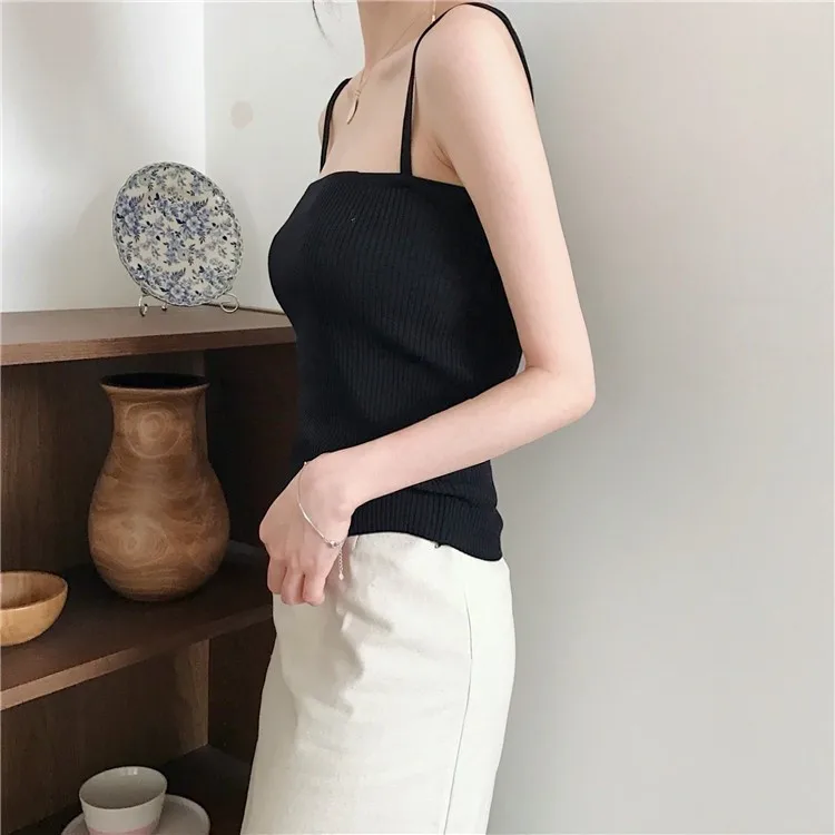 Кроп-Топ женский вязаный, одноцветное на бретелях, 2020