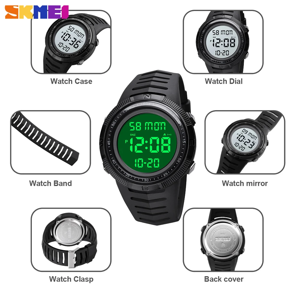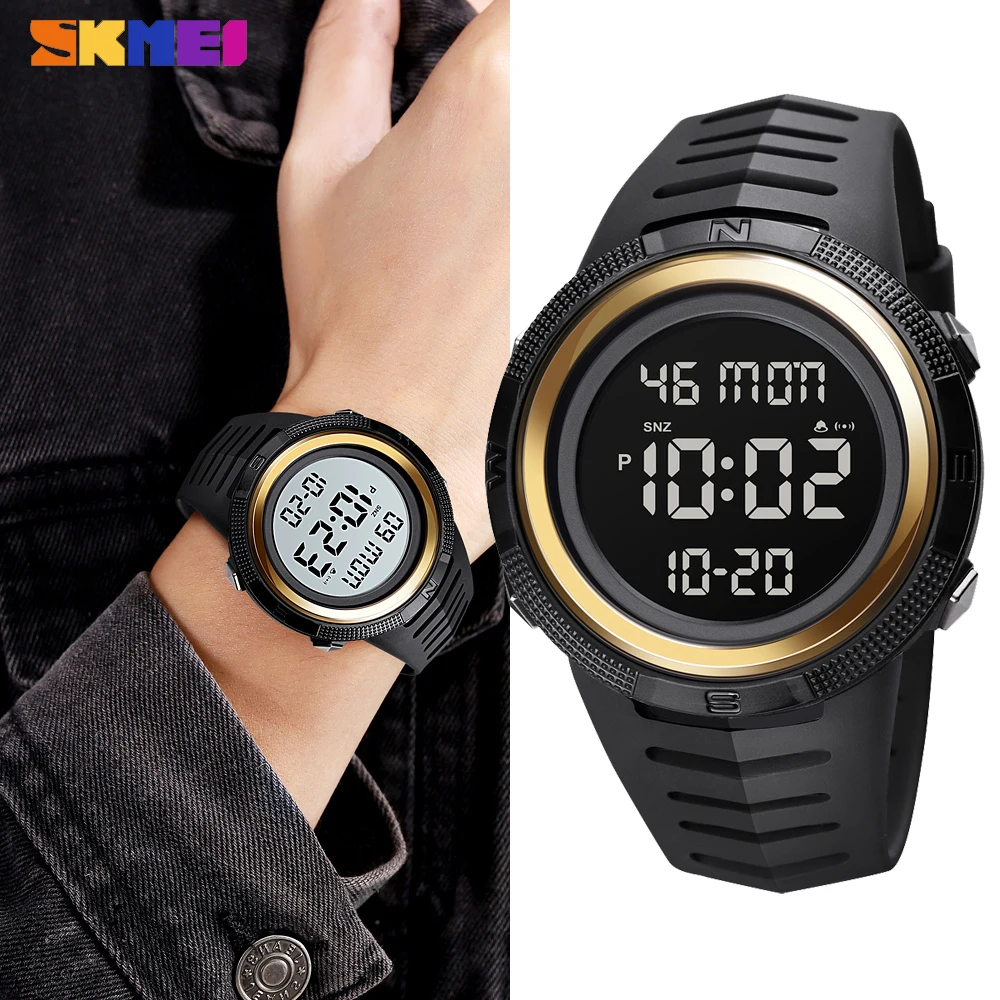 SKMEI роскошный светодиодный цифровой мужские часы спортивные 2 времени Chrono часы обратного отсчета водонепроницаемые новые электронные наручные часы Reloj Hombre