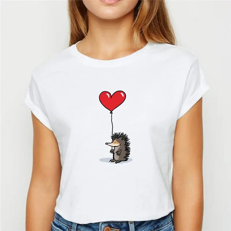 Женская футболка, лето 2020, женская футболка с ежиком и одуванчиком, свободная Весенняя футболка, женские топы, футболки harajuku с круглым вырезом