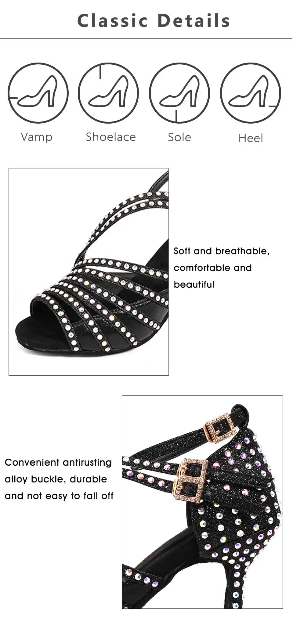 Туфли для латиноамериканских танцев, с закрытым носком и блестками