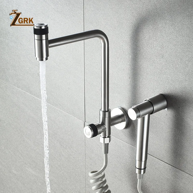 Настенный кран для ванной комнаты ZGRK 304 из нержавеющей стали, кран для швабры и бассейна с распылителем, Очищающий кран