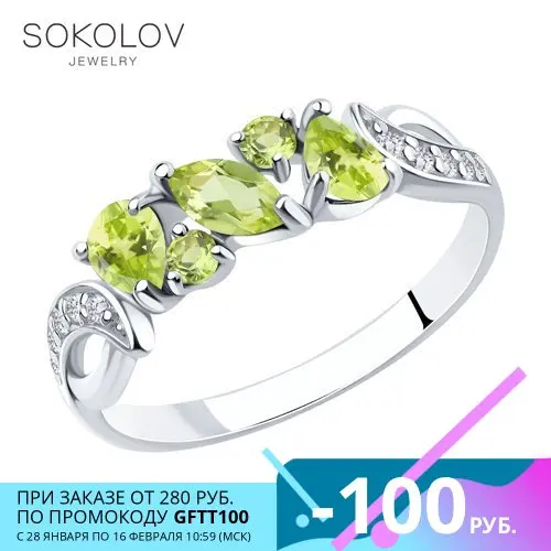 Кольцо SOKOLOV из серебра с хризолитами и фианитами, Серебро, 925, Женское, Оригинальная продукция