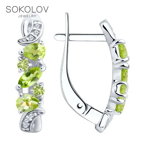Серьги SOKOLOV из серебра с хризолитами и фианитами, Серебро, 925, Женские, Серьги 2022 тренд, Оригинальная продукция