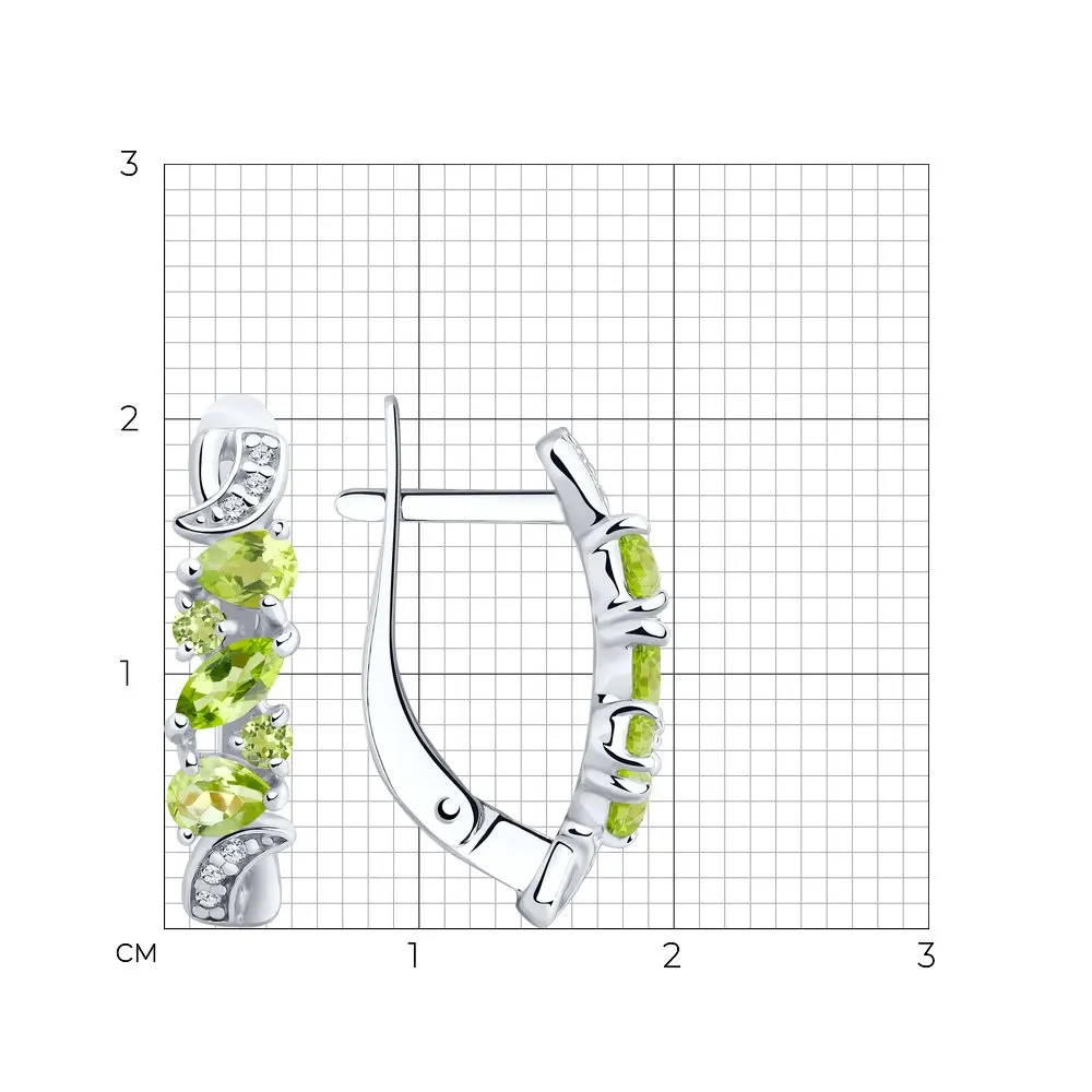 Серьги SOKOLOV из серебра с хризолитами и фианитамиСеребряные серьги с хризолитами привлекают внимание своим по-весеннему нежным дизайном. Идеальное пополнение ювелирной коллекции для тёплого сезона: лёгкие и изящные, серьги вносят женственный акцент в любой выбранный с утра образ. Яркие хризолиты свежего оттенка лайм подчеркнут природные данные светловолосых и шатенок, а с рыжими волосами составят эффектный контраст.
