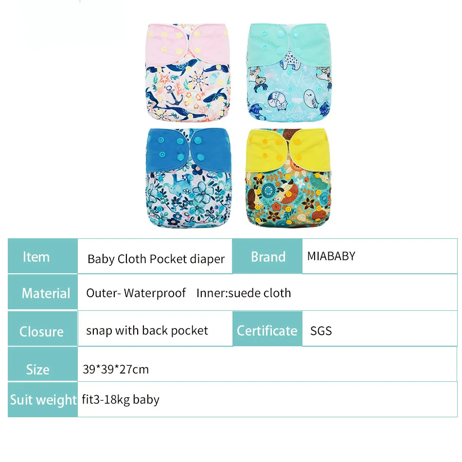 Miababy моющийся подгузник, 2 шт.набор, экологически чистый, быстросохнущий, водонепроницаемый, многоразовый