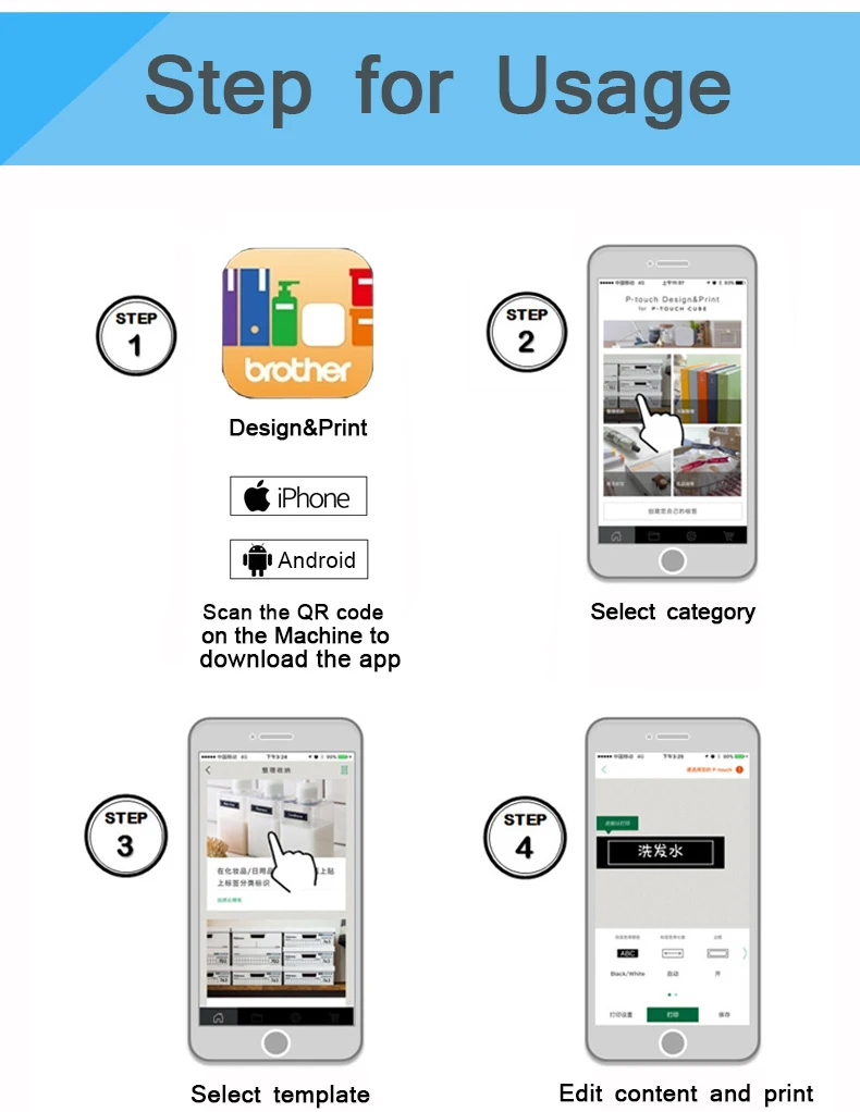 Мини-принтер для этикеток Brother PT-P300BT P-touch Cube, устройство для печати этикеток Brother, Bluetooth-соединение, 6912 мм