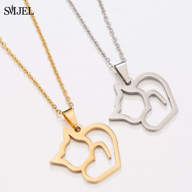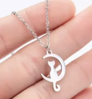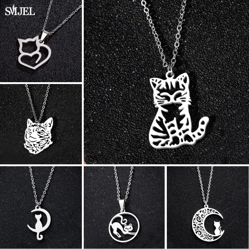 Ожерелья с котом из нержавеющей стали, корейские ювелирные изделия в виде кота, Длинные ожерелья для женщин на свадьбу, лунные ожерелья