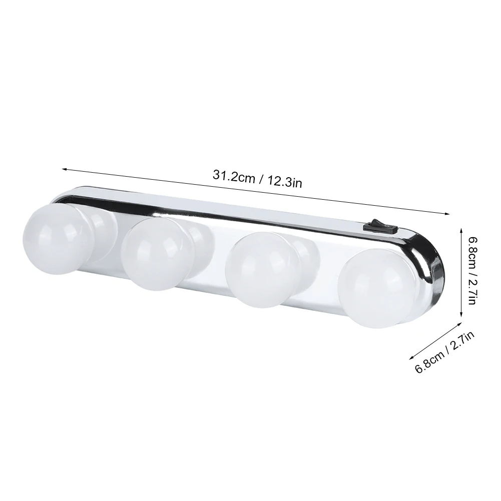Светодиодная лампа для зеркала для макияжа, 4 светодиодный ных лампы, тип присоски для косметики