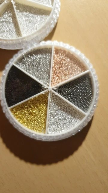 отличное качество, всё как на картинке. брала набор бусин ассорти всех цветов и набор серябряных бусин разного размера.в наборе ассорти одного среднего размера, кроме черных, они разного.от мелких крупинок до средних. все бусины металлические, проверяда магнитом, кроме чёрных, чёрные стеклянной основы, но сами выглядят как черная икра, плотного цвета, без просвета и погрешностей в окраске. шли с 23.10 - 27.12.2020 до мо. с продавцом не общалась.