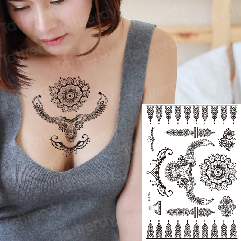 Временные татуировки хной наклейки египетские индийские сексуальные арабские татуировки кружевные узоры из хны наклейки для украшения Мандала тату поддельные Водонепроницаемые Большие