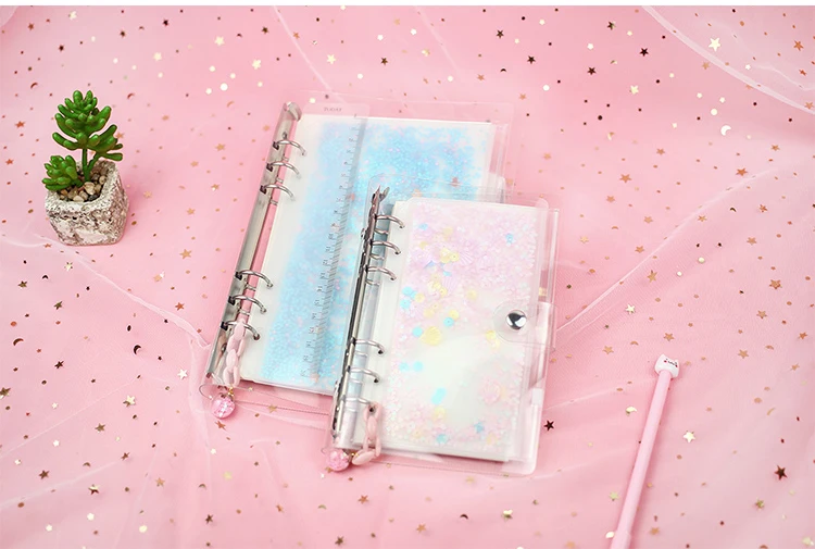 Обложка для блокнота A5A6, прозрачная папка с блестками и 6 кольцам...
