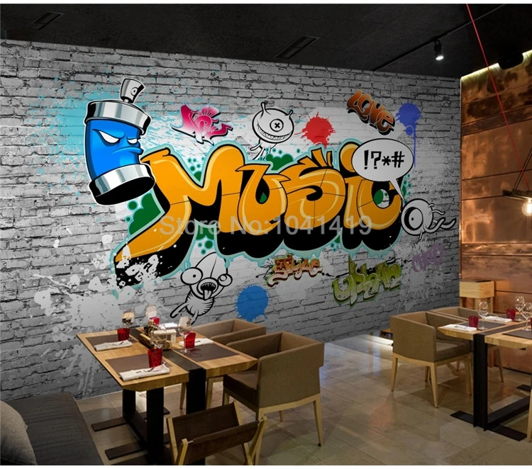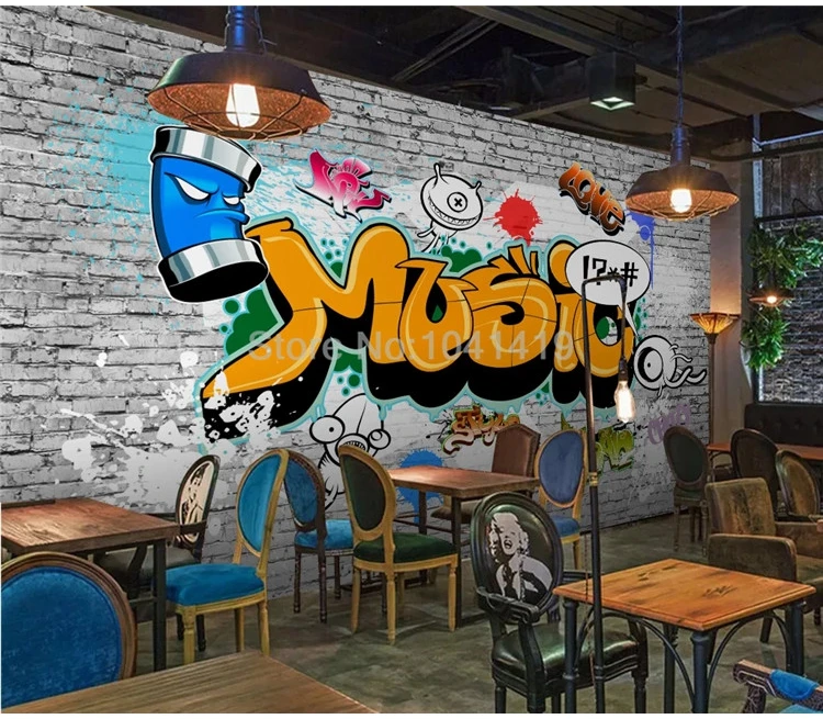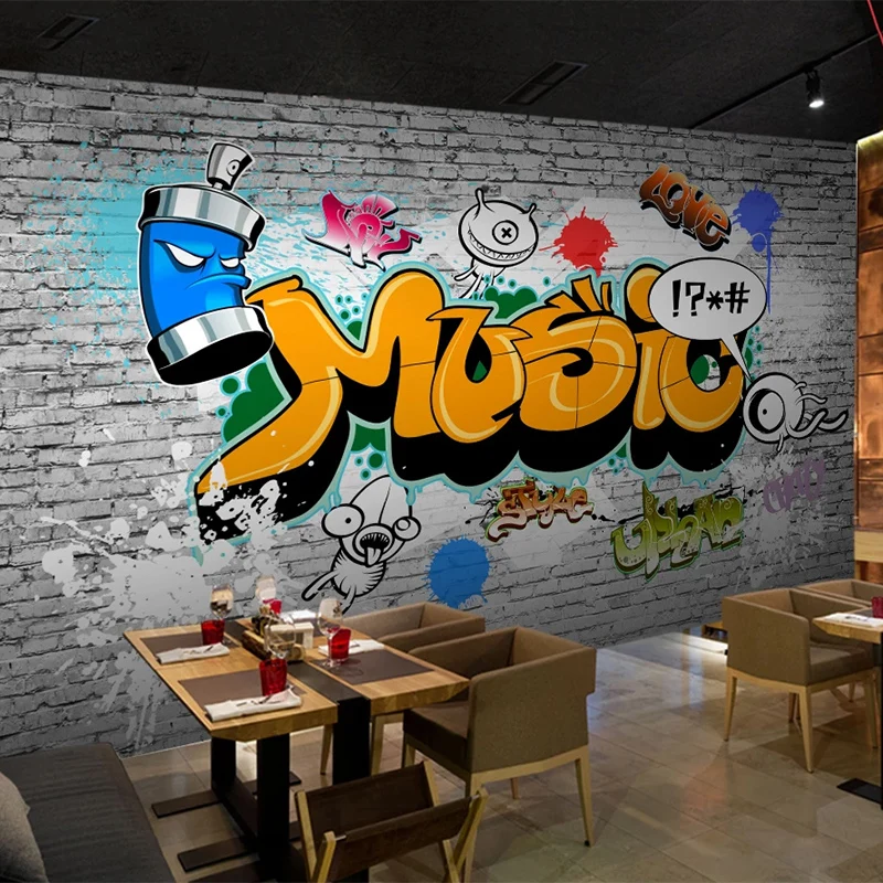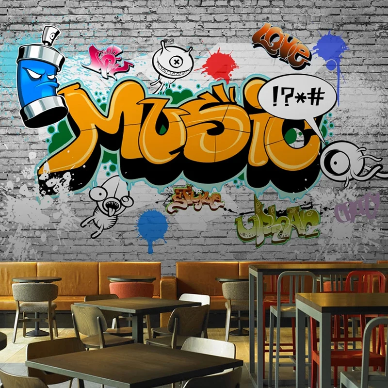 Фотообои 3D ретро уличные граффити кирпичная стена бар ресторан фон Настенная роспись личность Творческий Papel De Parede 3D