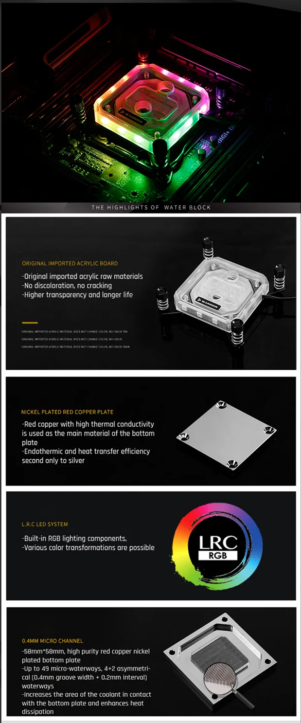 Водяные блоки Barrow LTYK3X-04-V2, для процессора Intel Lga2011 X99X299, LRC RGB v2 акриловый блок водяного охлаждения микроводного канала
