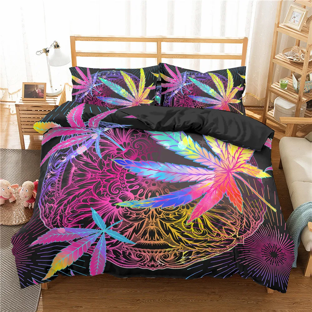 Комплект постельного белья Homesky, из мягкого полиэстера, с пододеяльником и наволочкой, размеры QueenKingпостельные принадлежности с изображением листьев