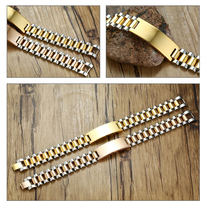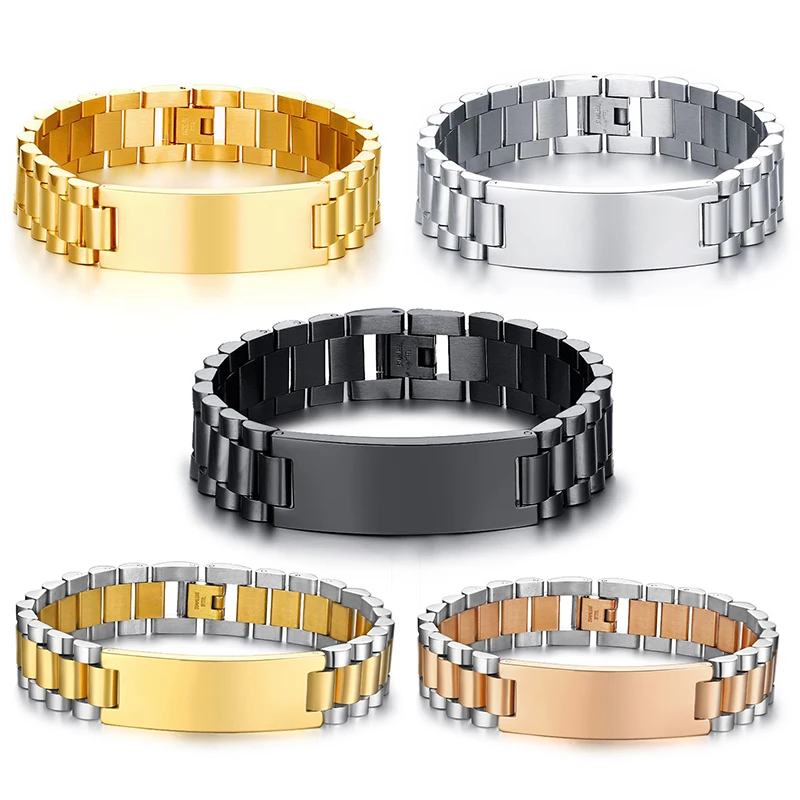 Мужской широкий браслет из нержавеющей стали с гравировкой