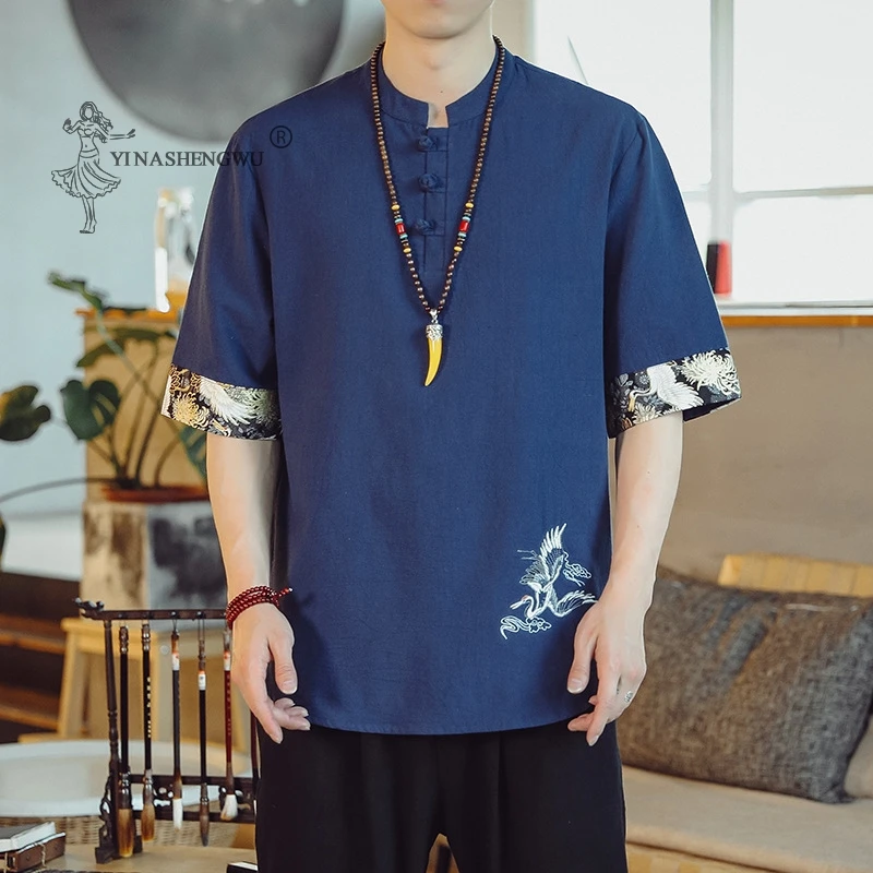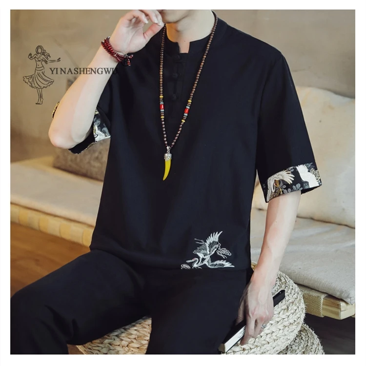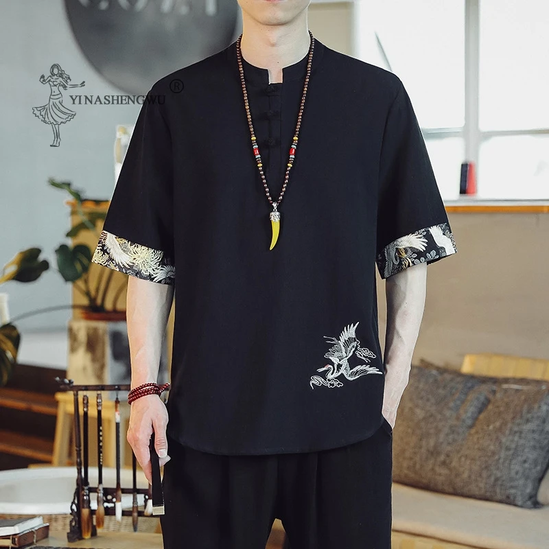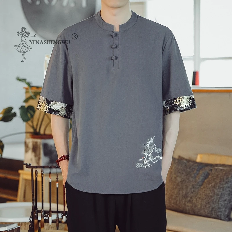 Кимоно мужское, рубашка с коротким рукавом и вышивкой, в японском стиле Харадзюку, юката, костюмы с кардиганом