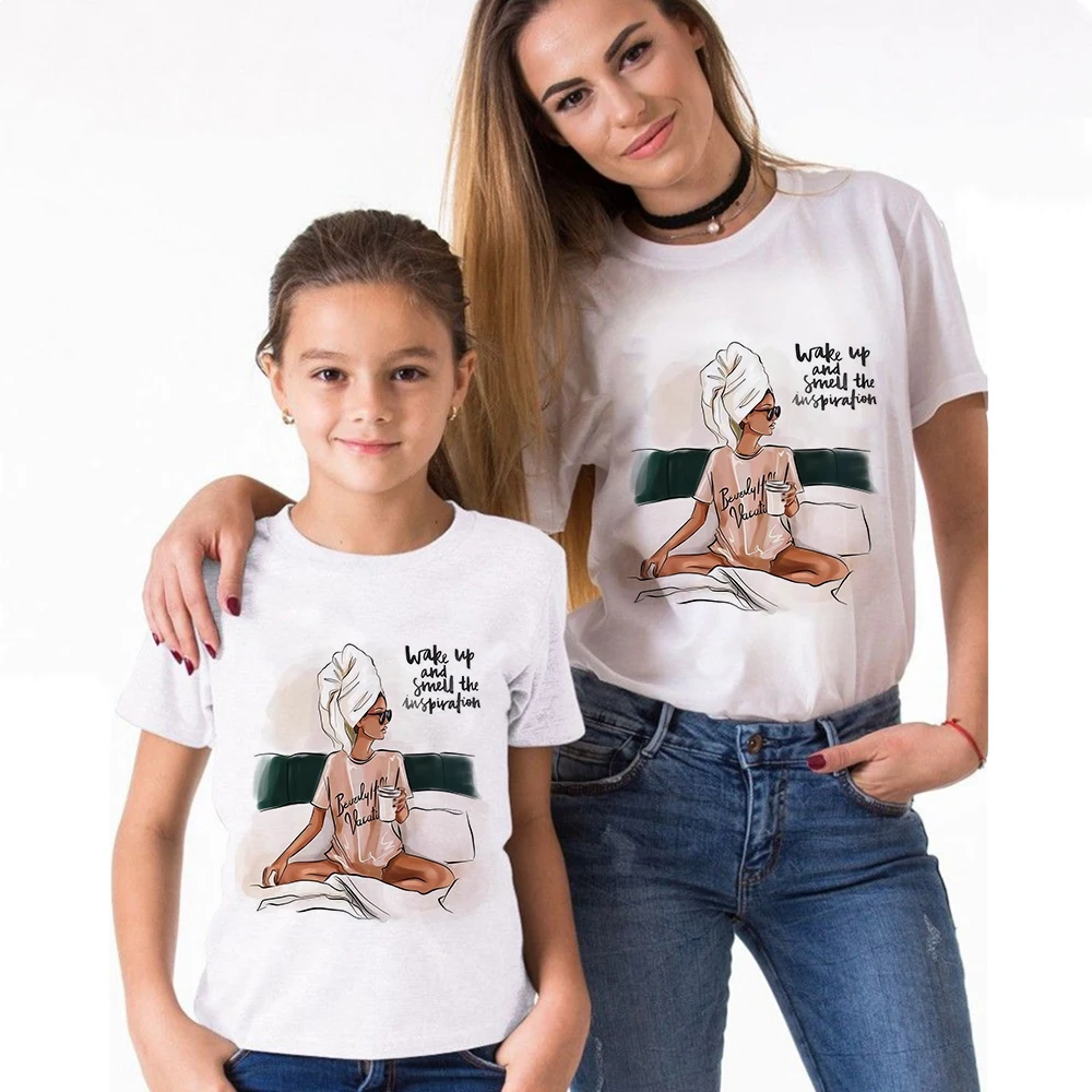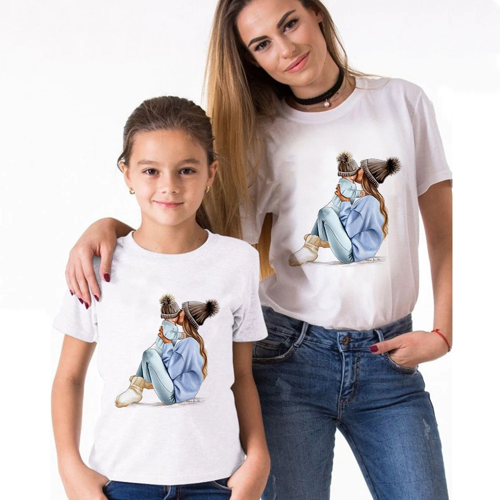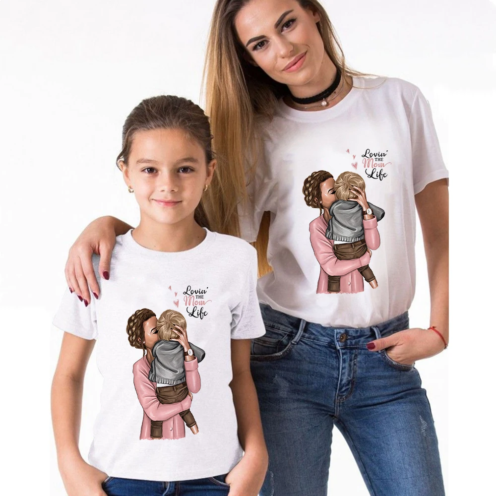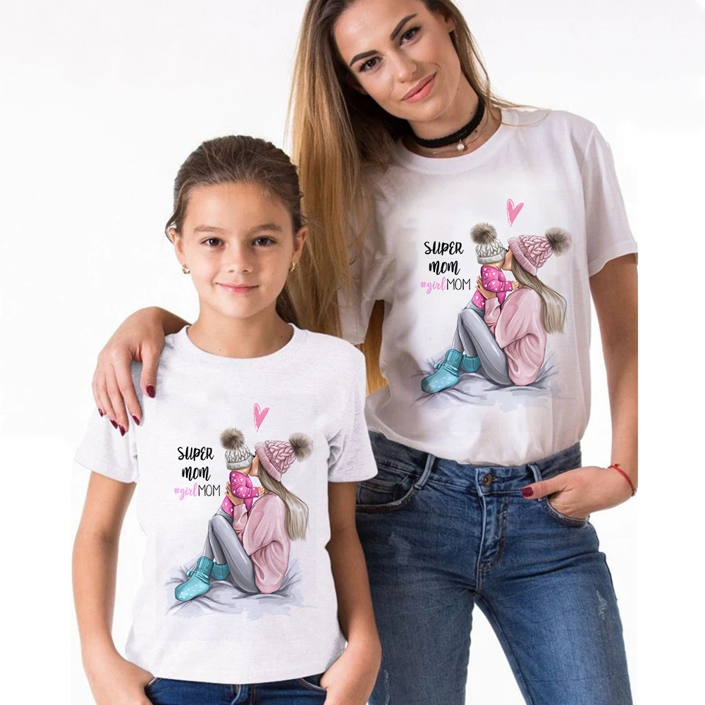 Детская футболка для мамы и дочки, одежда для всей семьи, летняя футболка для мамы и дочки, модные забавные футболки Harajuku ropa, mujer