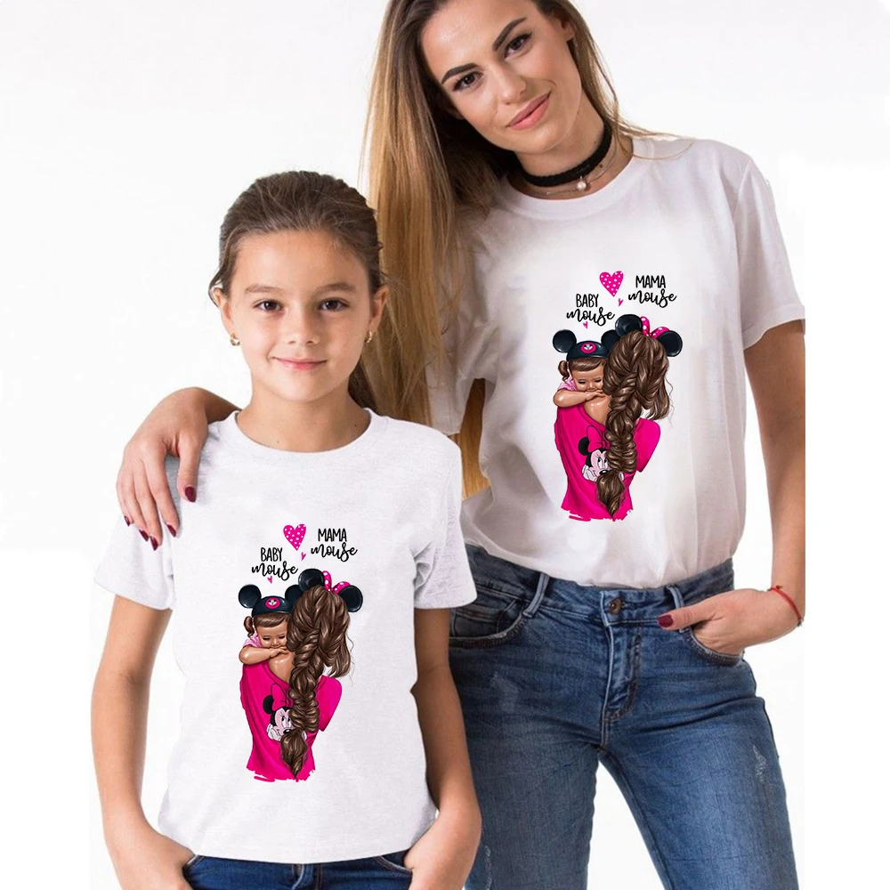 Одежда для мамы и ребенка, футболка с мультяшным принтом на день ро...
