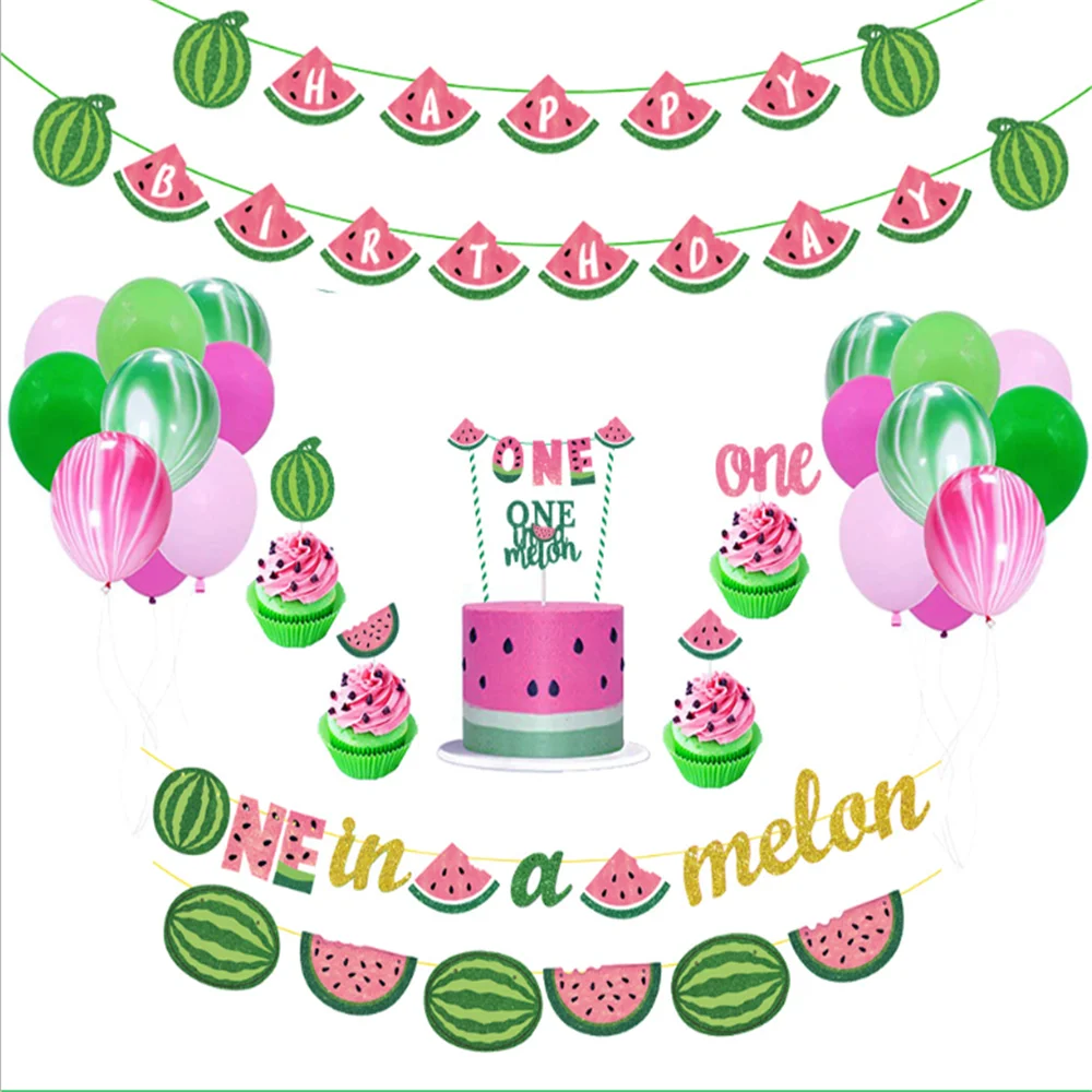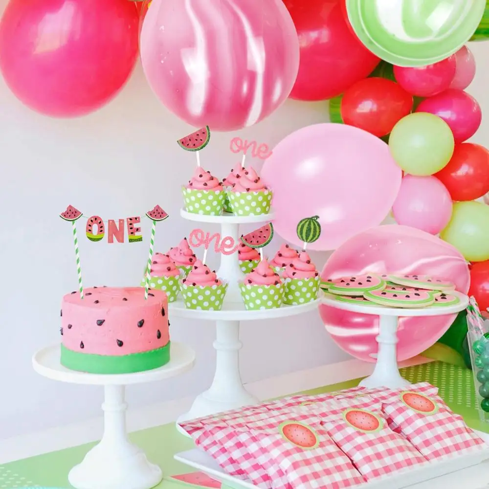 Летнее платье с фруктовым принтом в виде Арбузов, вечерние украшения в один Дыня Гавайи летние Тропические Платья вечерние Happy один год День рождения вечерние декор для детей