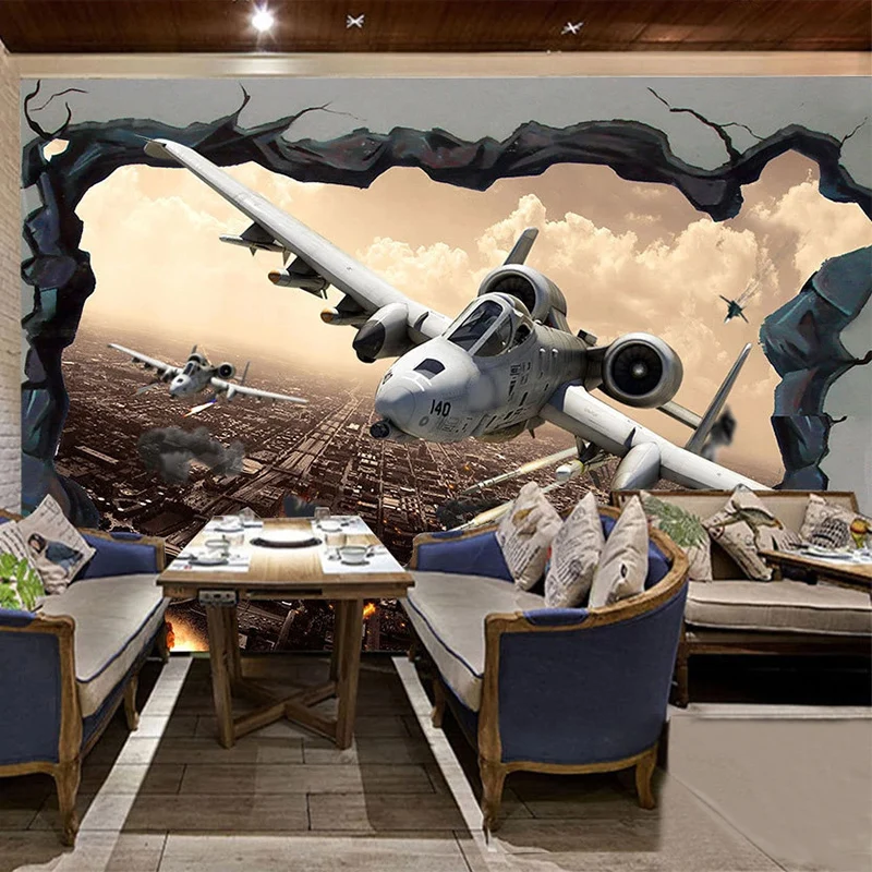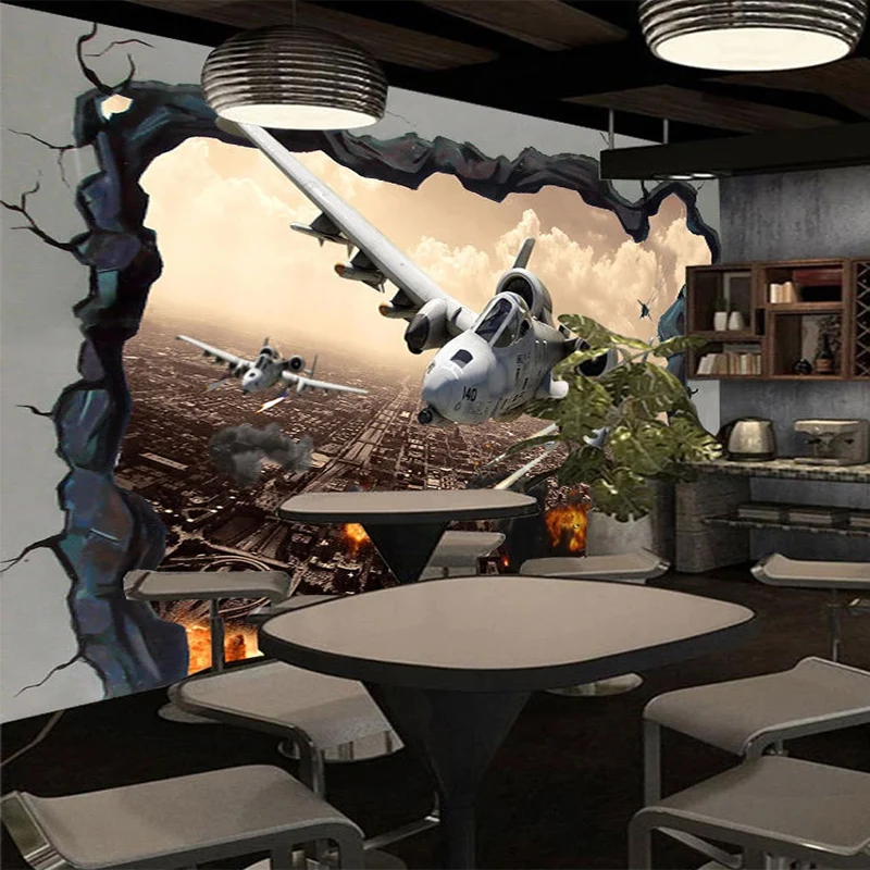 Настенные обои на заказ, Креативные 3D стерео обои с самолетом, разбитые стены для ресторана, спальни, для мальчиков