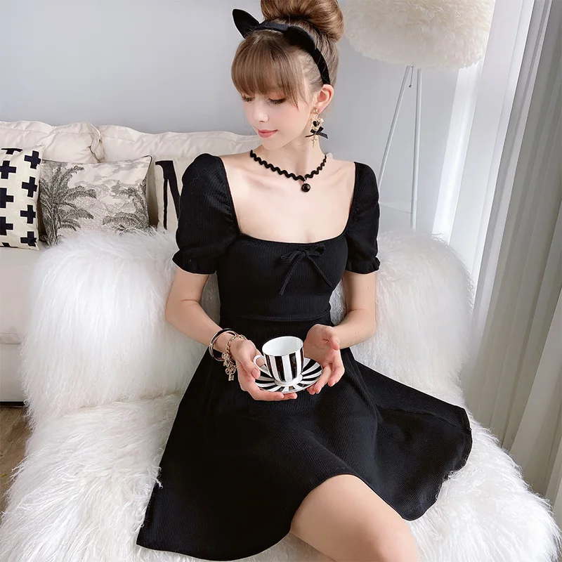 Элегантное розовое однотонное платье Dabuwawa, женское облегающее платье с квадратным вырезом, коротким рукавом и бантом, во французском стиле, DT1BDR058