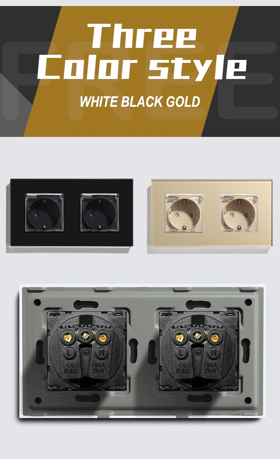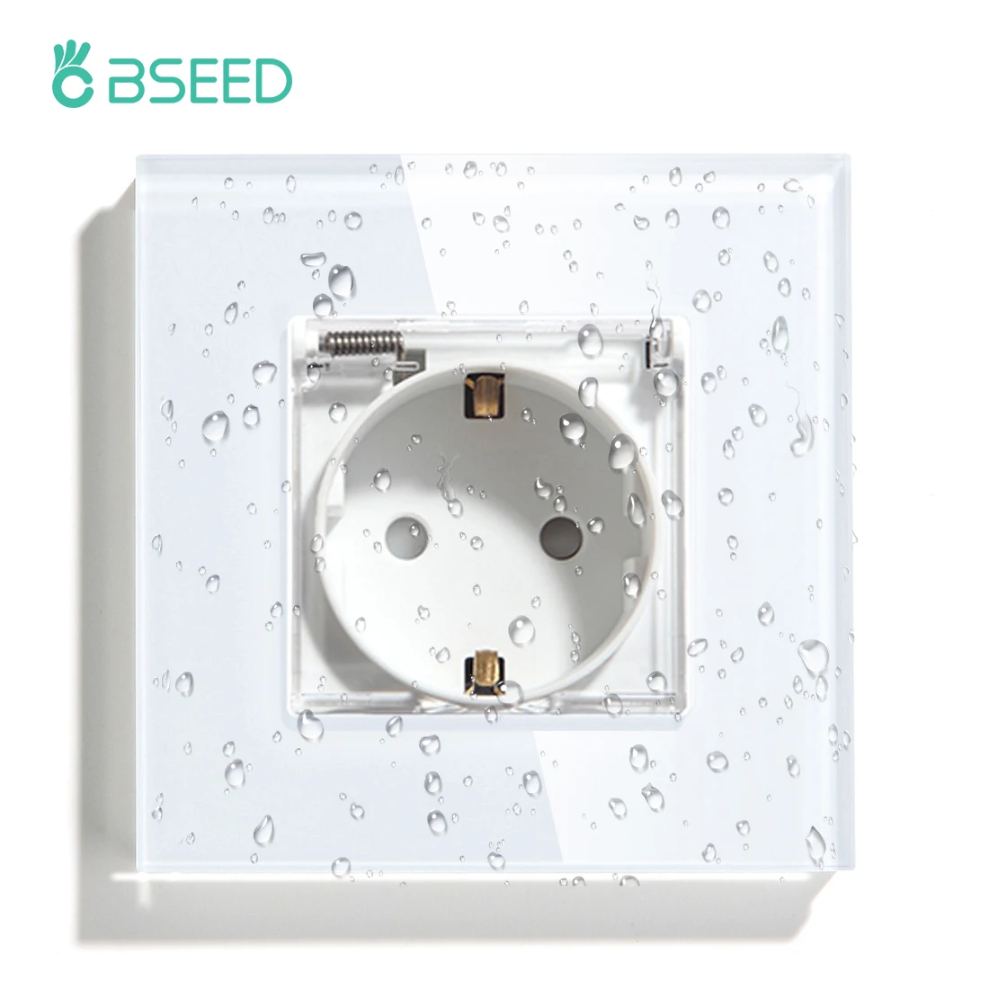 Белая стеклянная панель BSEED гнездо питания стандарта ЕС, водонепроницаемая розетка, 16 А