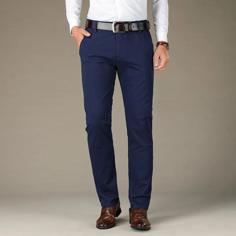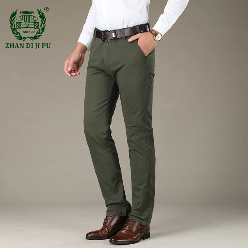 Мужские хлопковые брюки классические повседневное бизнес стрейч брюки мужские прямые брюки Мужской Цвет: черный, синийхакизеленого цвета, размера плюс, 46