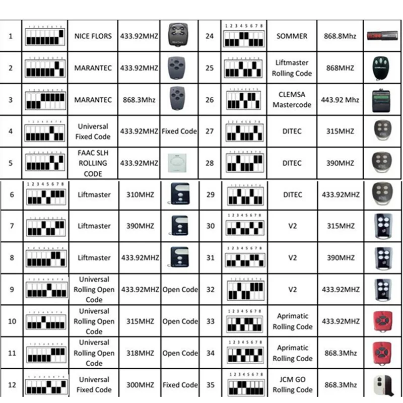 Брендовые пульты дистанционного управления (ATA PTX4, APRIMATIC, ALLMATIC, BENINCA, DITEC, DEA, Come, DITEC, DOORHAN, ECOSTAR, ERREKA, FOX, GIBIDI, HORMANN, LIFTMASTER, MHOUSE, MOTORLINE, MUTANCODE, NICE, NICE, новосферм, PUJOL, SEAV, SOMMER, V2, VDS)