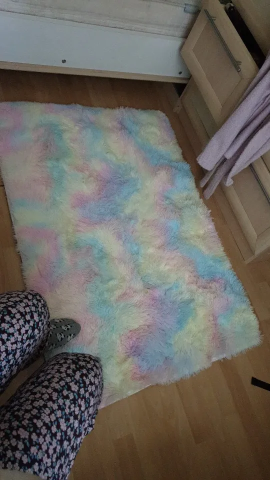 очень классный, мягкий и пушистый, хочется постоянно его гладить. Даже не знаю куда такую красоту положить, думала сначала запасной в туалет будет, но теперь жалко топтать его грязными ногами. Пока будет как декор в спальне, возле кровати