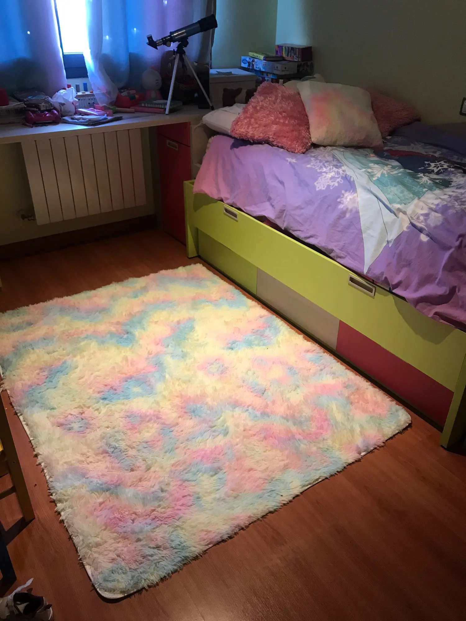 Радужные пушистые коврики, противоскользящий ворсистый коврик для столовой, гостиной, спальни, прикроватный плюшевый ковер, напольный коврик, домашний декор
