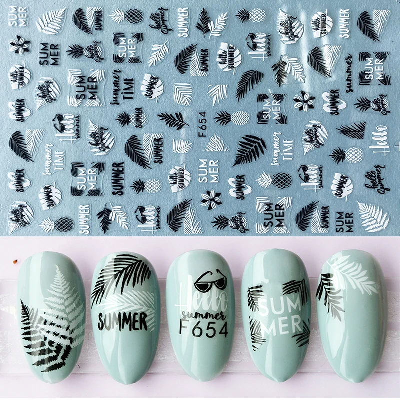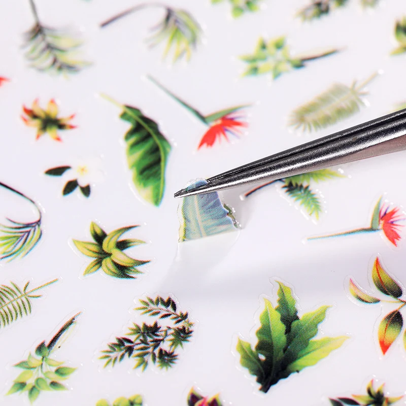1 шт. 3D наклейка для ногтей тропический пляж остров стиле листья и цветы зеленый простой летний слайдер для маникюра наклейки для дизайна ногтей наконечник