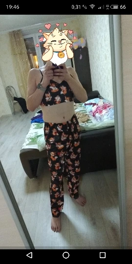 пижама классная.только штаны широки,думала поуже будут и на мой рост 159 штаны длинноааты на 3 см.но это не критично.все очень понравилось.